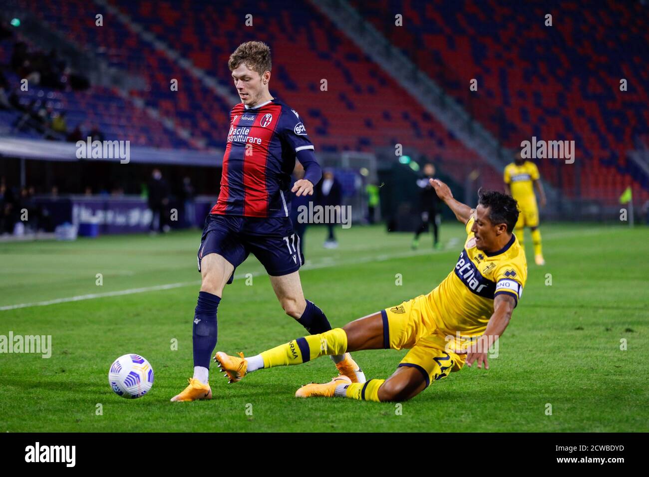 Bologna Parma . Lukasz Skorupski, Lorenzo De Silvestri, Danilo, Takehiro Tomiyasu, Aaron Hickey, Andreas Skov Olsen, Andrea Poli, Roberto Soriano, Jerdy Schouten, Rodrigo Palacio, Musa Barrow.